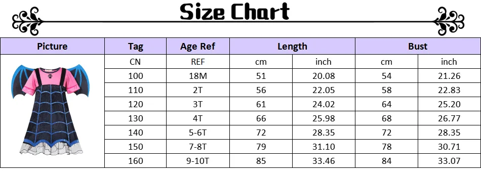 Vampirina Cosplay Dress Girl Kids Princess Charms Dress Up Christmas Vampire Halloween Costume Children Carnival Party